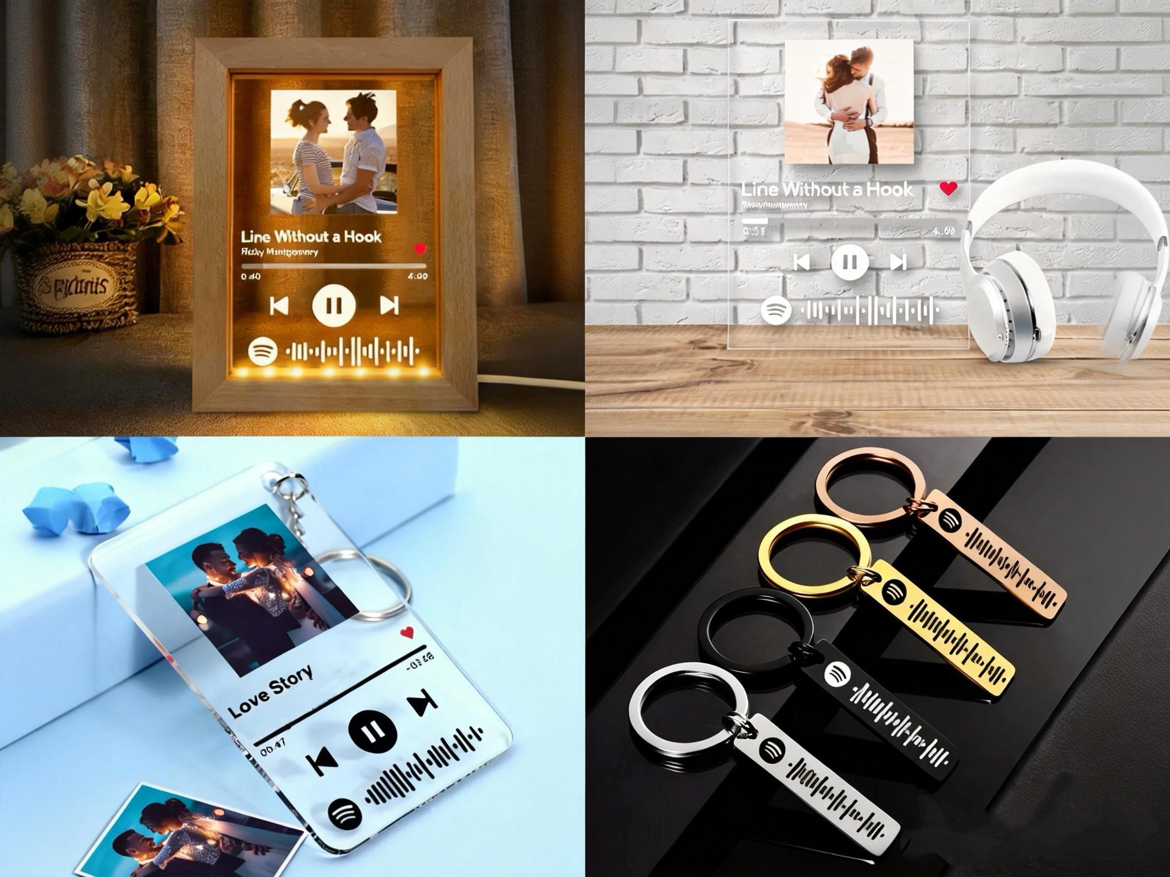 Choose your favorite song/album and turn it into a beautiful custom song keychain, Plaque frame, keychain+plaque frame, and night lamp.