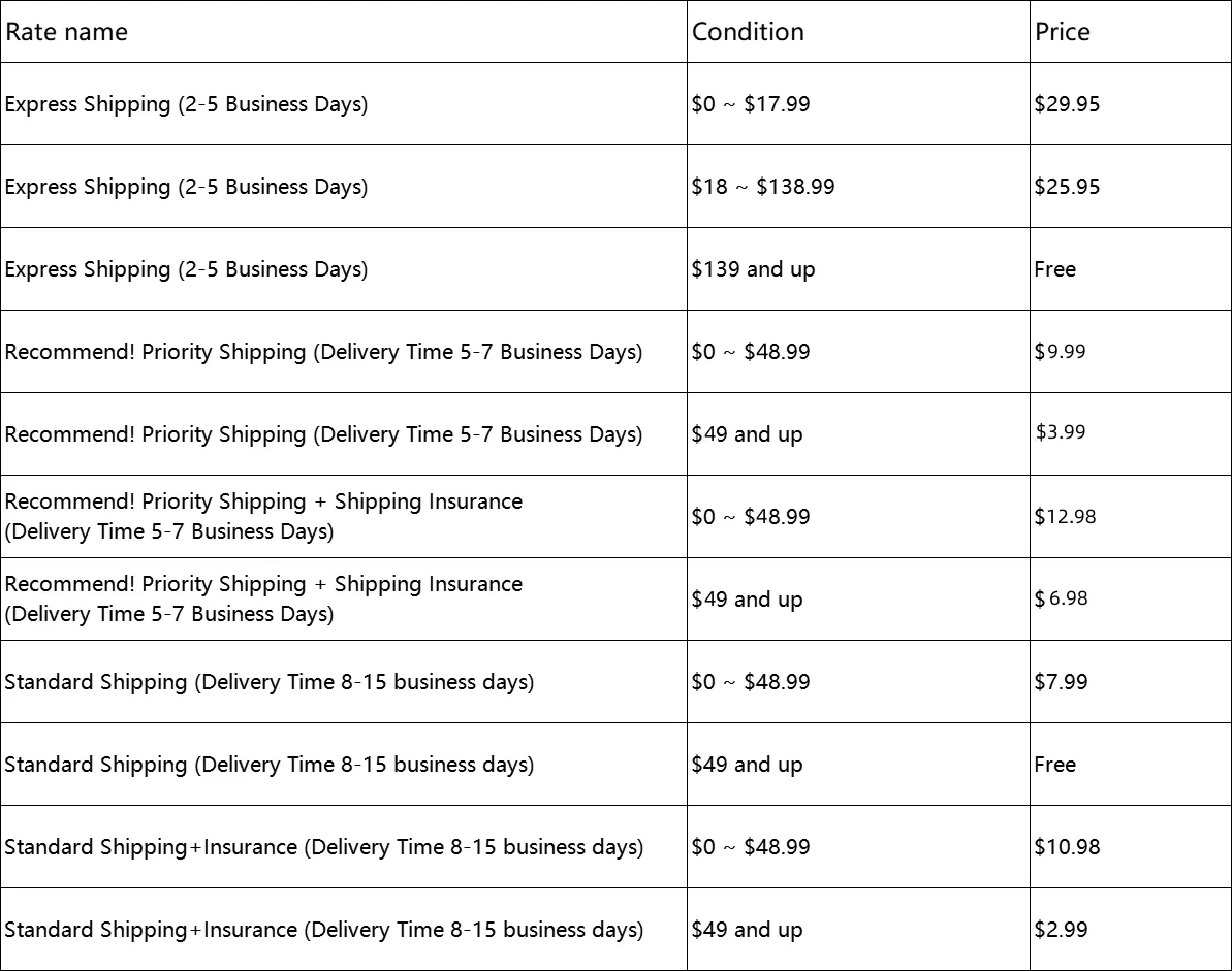 We are pleased to offer FREE Standard Shipping on all orders over $49 to the entire US For faster shipping service, you can select from our Standard Shipping or Expedited.