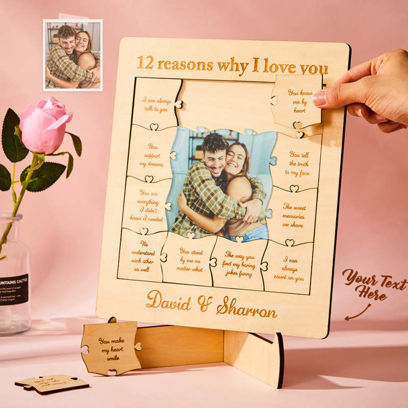12 Reasons Why I Love You Custom Photo Name Acrylic Wooden Puzzle