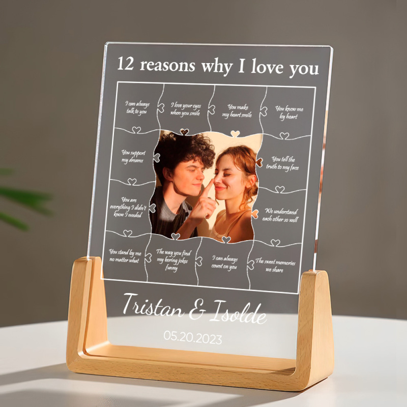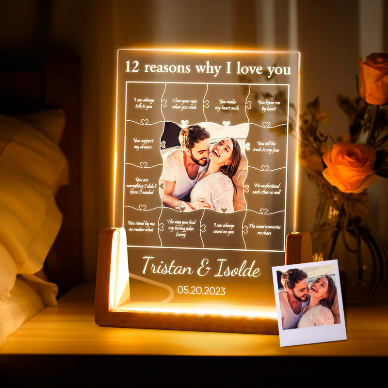 12 Reasons Why I Love You Custom Photo Name Night Light Gift for Lover