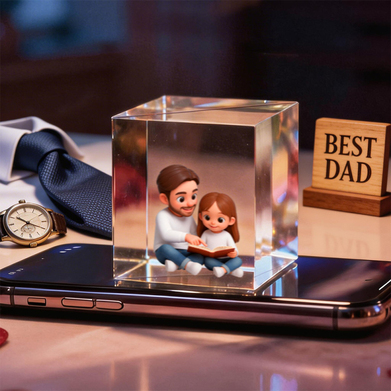 3D Cartoon Double-Person Lumina Boxes Hologram Video | Father's Day High-Transmittance Holographic Material Image Gift For DaD