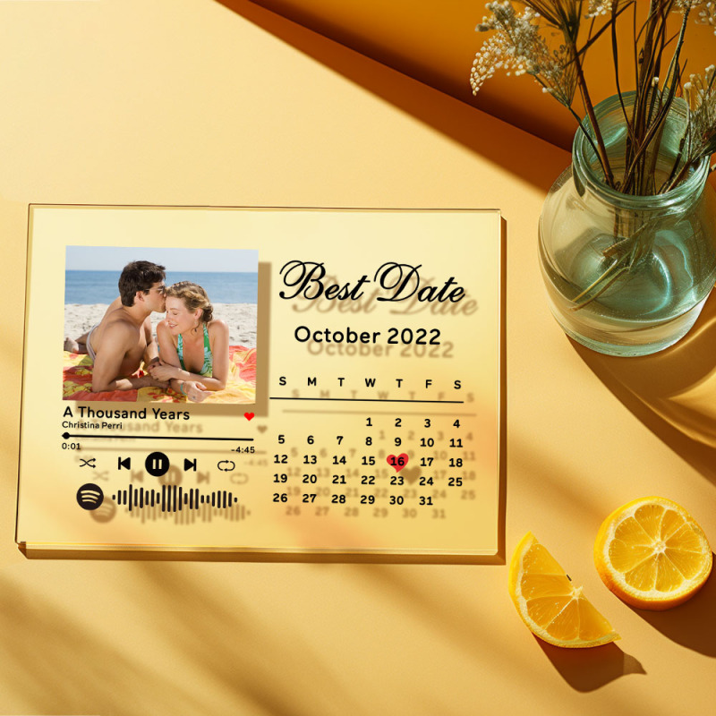 Custom Best Date Photo Calendar Plaque Acrylic Spotify Song Decor Anniversary Gift For Couples