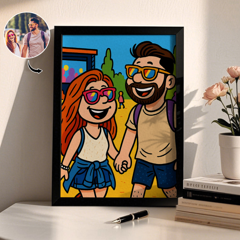 Custom Cartoon Photo Wooden Frame Decorations Romantic Decor Plaque Gifts for Family