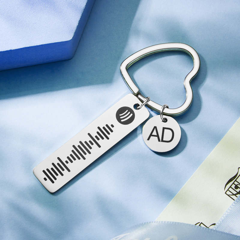 Custom Engraved Spotify Code Keychain Metal Keychain with Heart-shaped Keyring Gift for Her