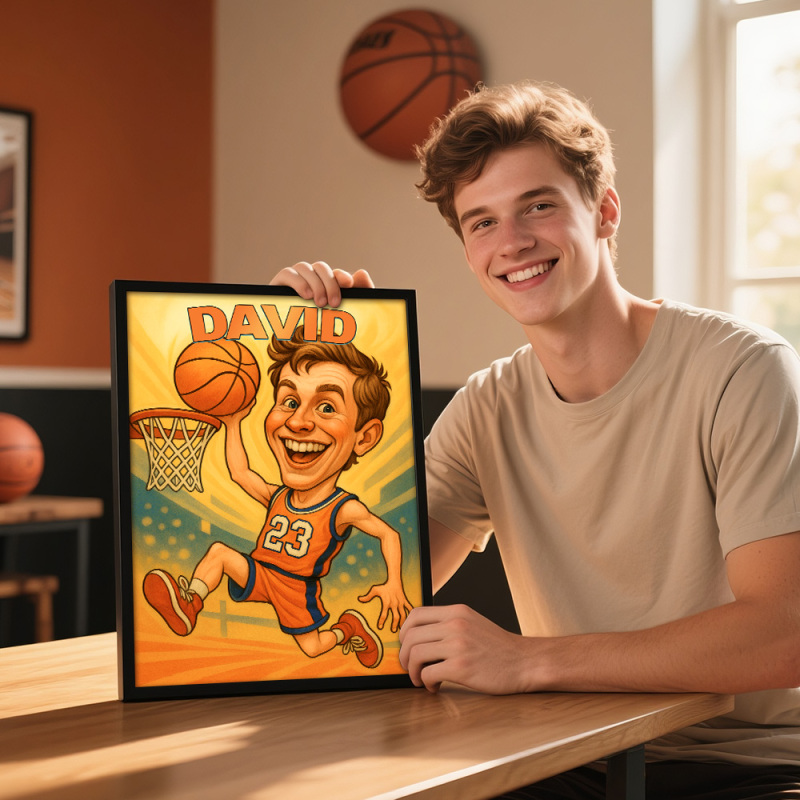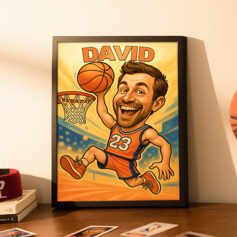 Custom Funny Basketball Caricature Portrait from Photo - Hand-Drawn Style Art Gift for Hoopers and Sports Fans