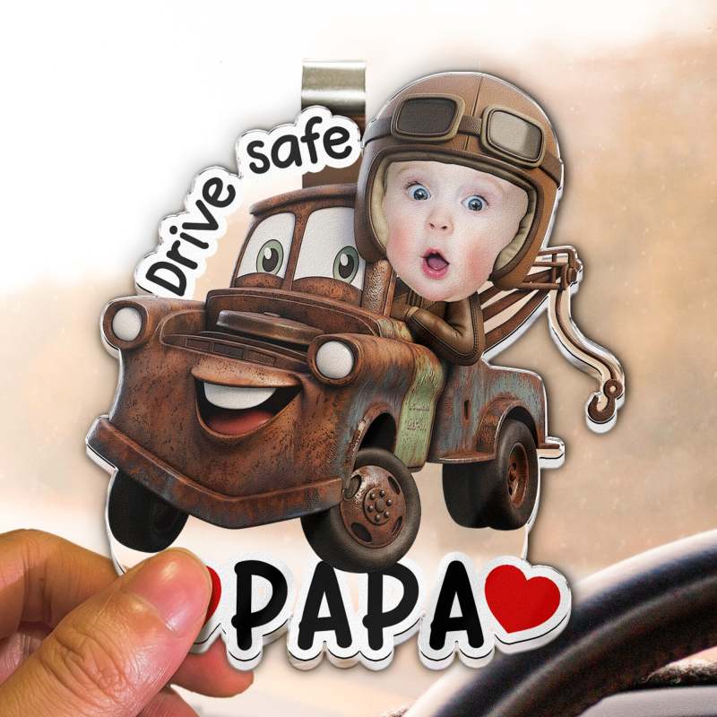 For all the precious car-riding moments that make life special, we bring to you this delightful, Acrylic Visor Clip. Titled "Drive Safe, Daddy, Papa, Mommy, Grandma", it entails a custom-designed racing car theme with a child's face. Designed to help remind your loved ones to stay safe while driving, this product highlighting a beautiful family bonding and uncanny resemblance will undoubtedly touch their hearts. A perfect gift for Father's Day, it also serves well to birthdays, anniversaries, Christmas, or any occasion that calls for expressing your warmth and care.