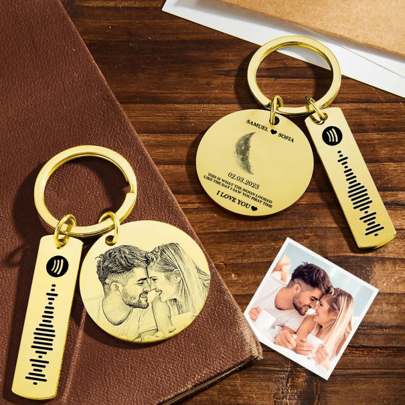 Custom Moon Phase Keychain Photo Spotify Keychain Personalized Stainless Steel Key Chains Valentine's Day Gift