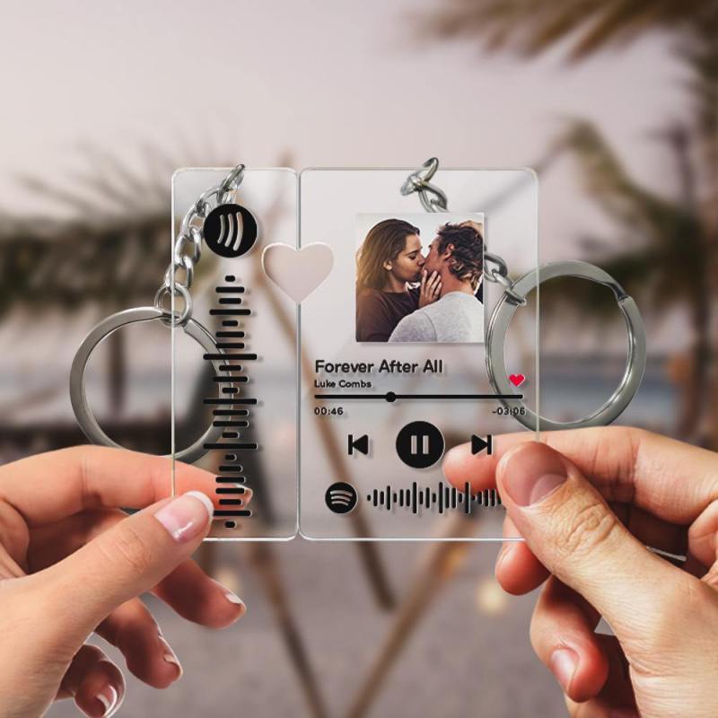Custom Photo Keychain Spotify Music Couple Keychain Set For Couple