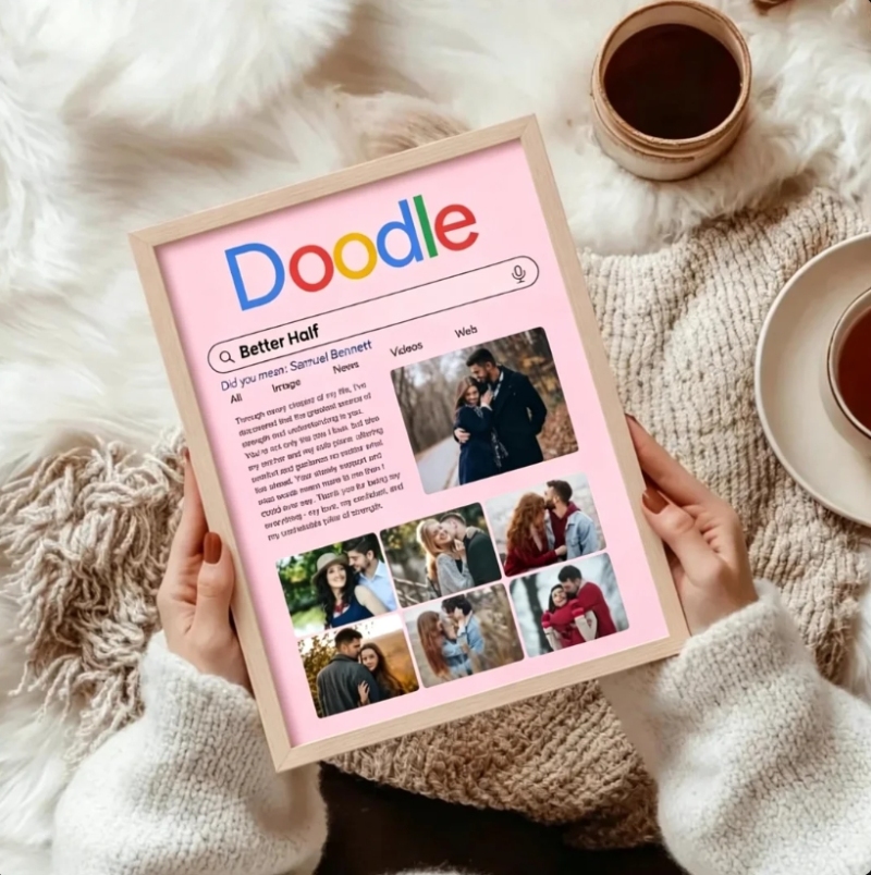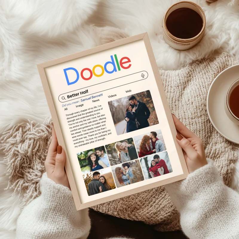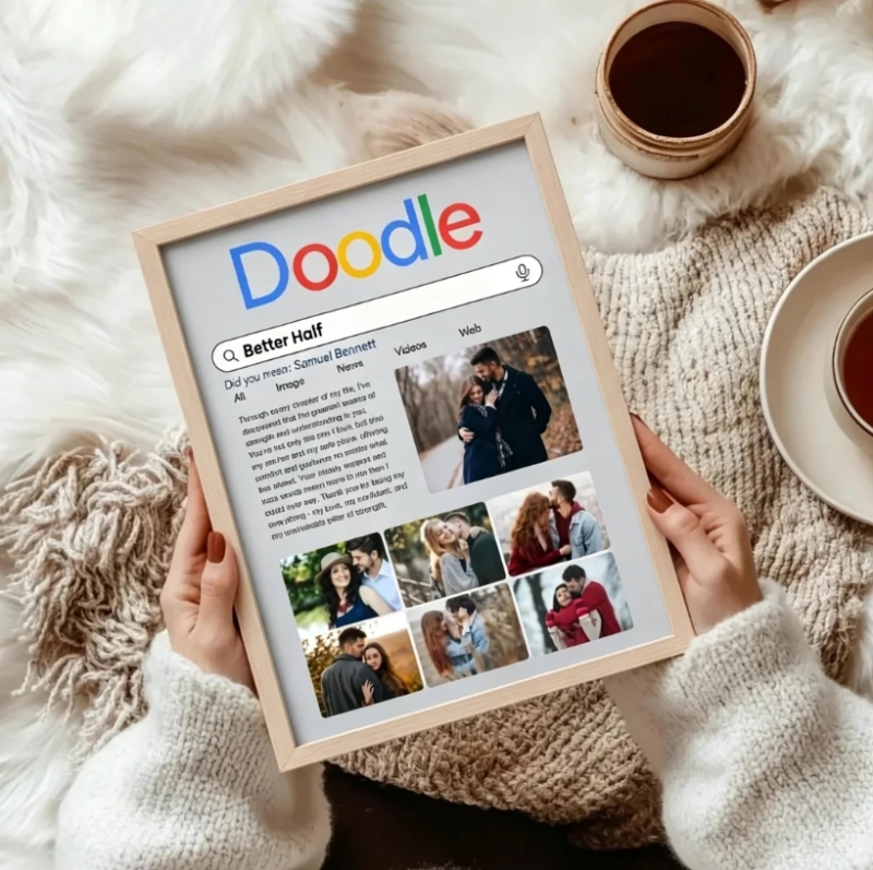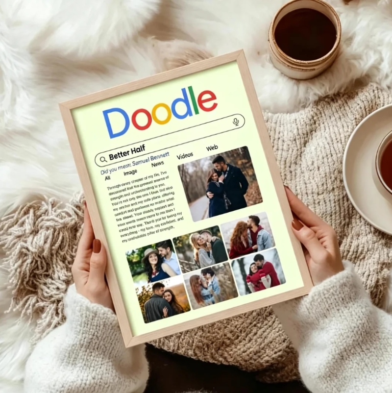 Custom Photo Seach Wooden Frame Personalized Couple Photo Collage Wall Art Unique Gift for Her