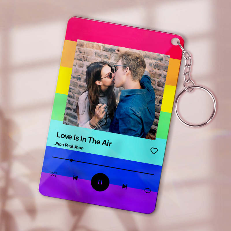 Custom Rainbow Background Photo Plaue Acrylic Text Keychain Personalized Gift For LGBT