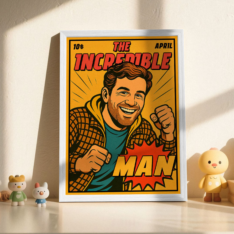 Custom Retro Comic Book Cover Portrait from Your Photo – Cool Vintage Comic Masterpiece Gift for Friends and Family