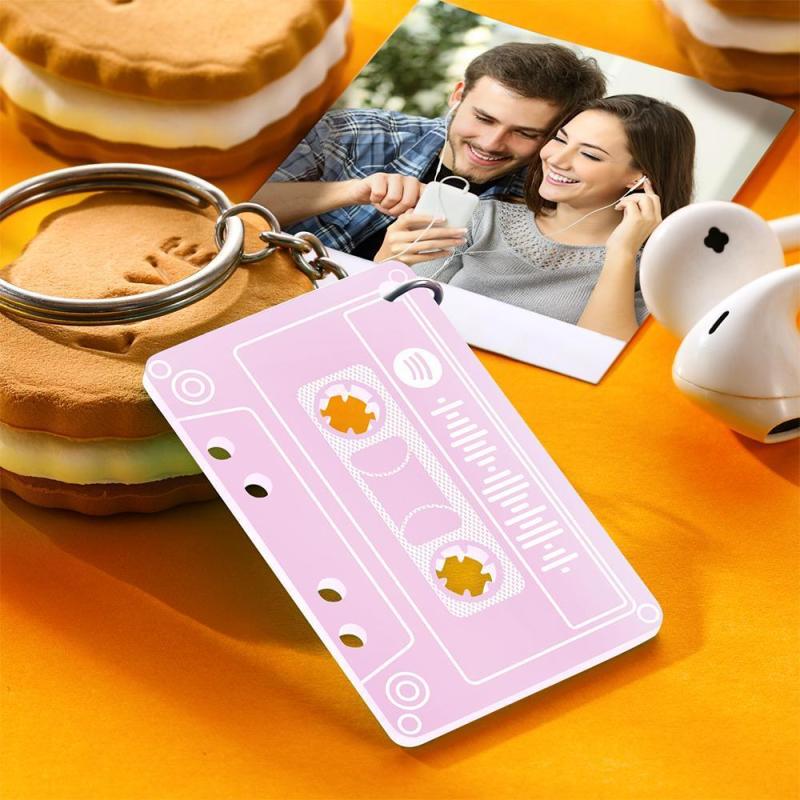 Custom Scannable Spotify Code Tape Keychain, Engraved Custom Music Song Keychain Yellow Tape Gifts for Her