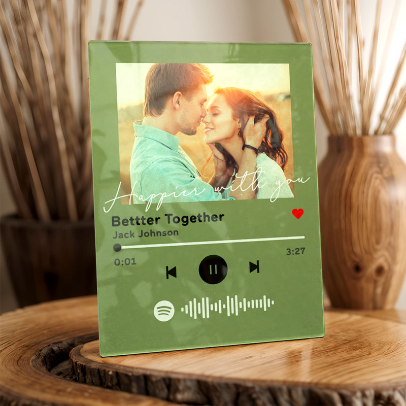 Home / Custom Spotify Glass Plaque With Your Photo Green Plaque Personalized Gifts For Her