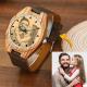 Men's Engraved Wooden Photo Watch Brown Leather Strap 45mm