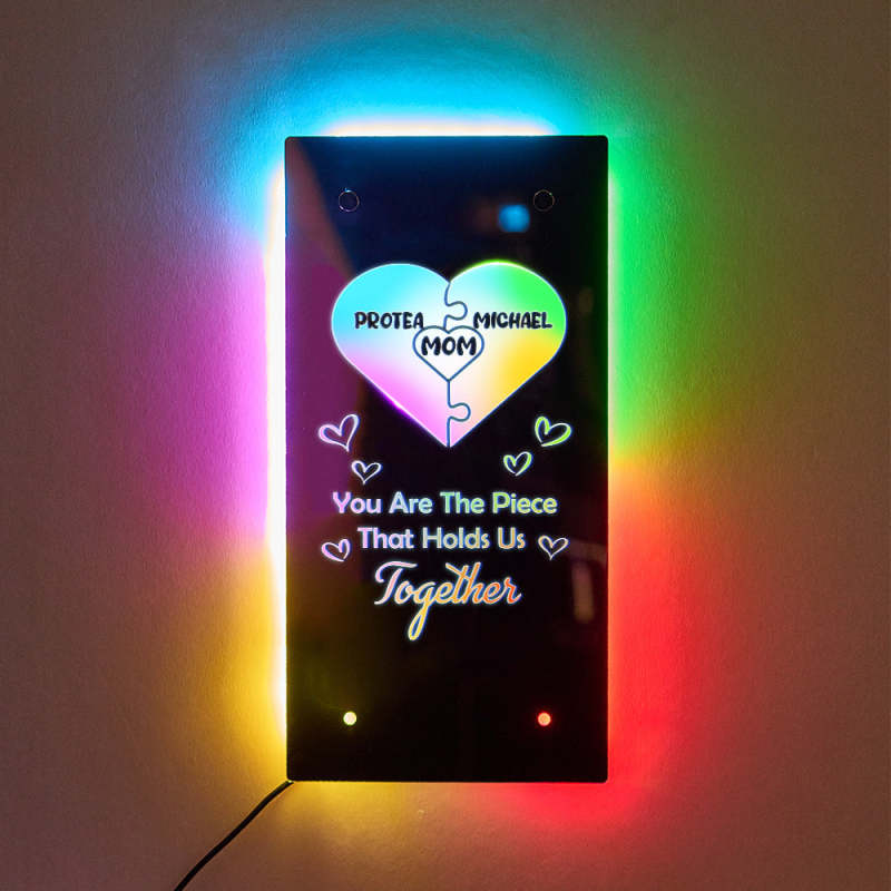 Customized Mother's Day Family Member Puzzle Mirror Lamp Mom You Are the Piece That Holds Us Together