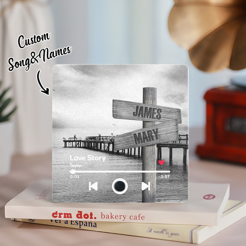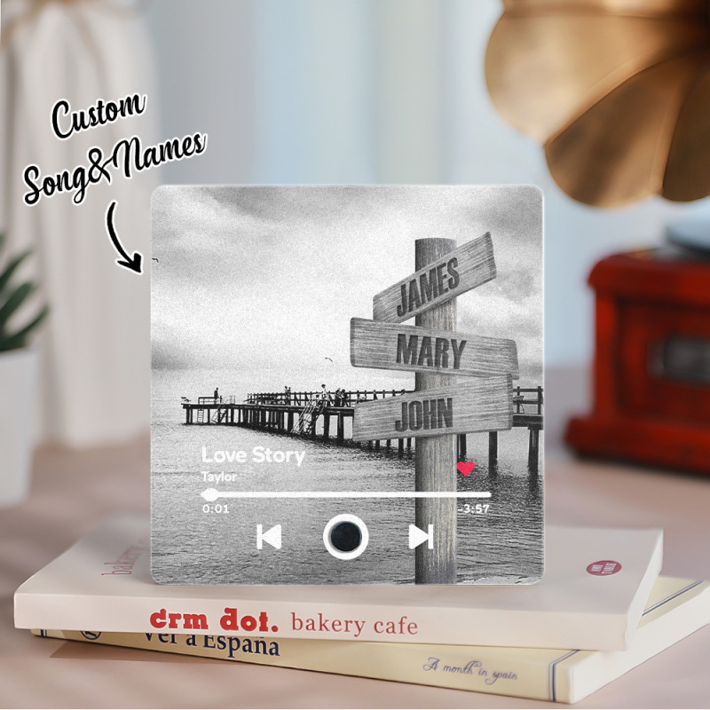 Customized Music Fridge Magnet Custom Engraved Name Wall Art Road Sign Street Style Can Play Songs and Adjust Volume