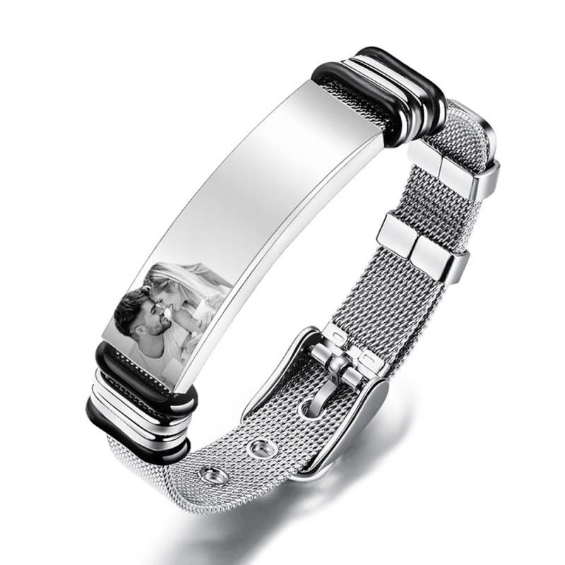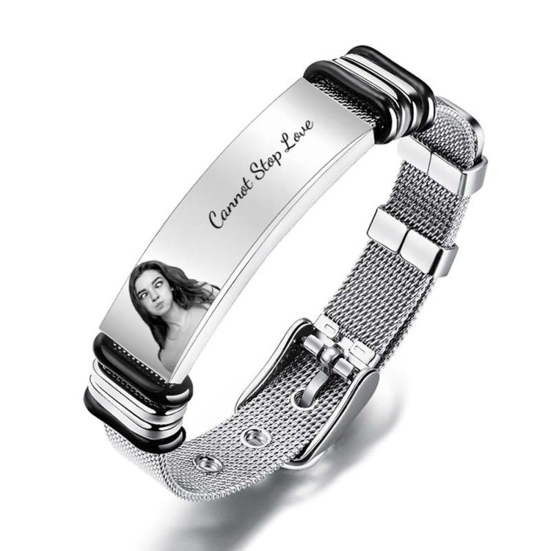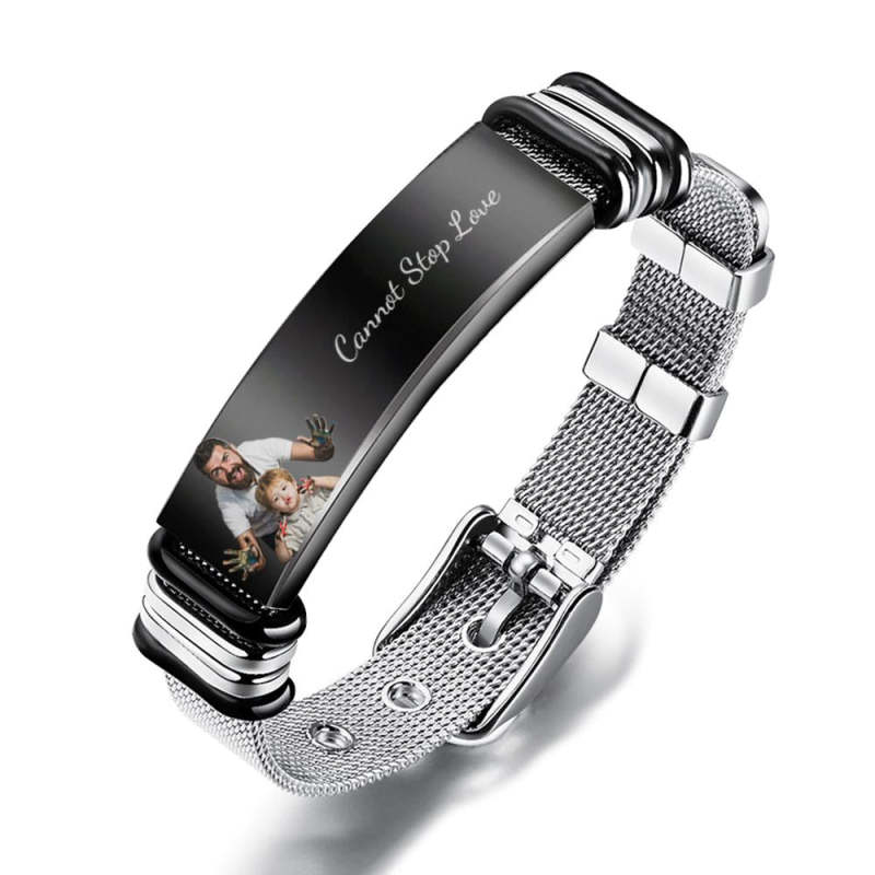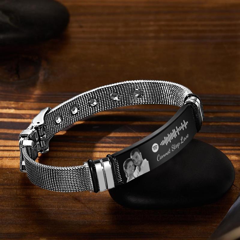 Customized Optional Photo Engraved Spotify Music Stainless Steel Bracelet Best Gifts For Men Gifts For Him