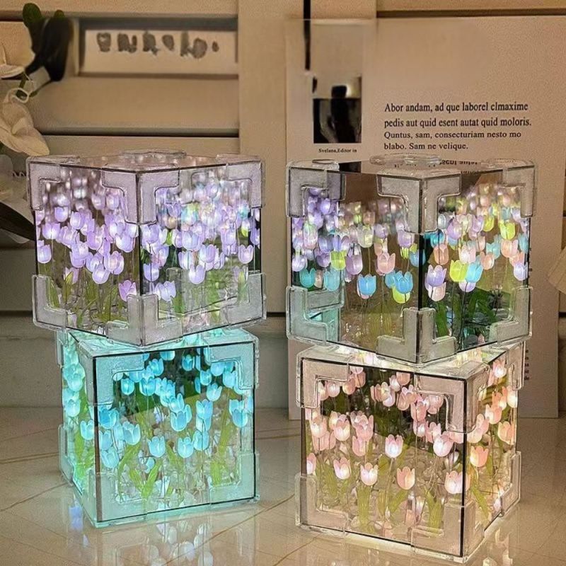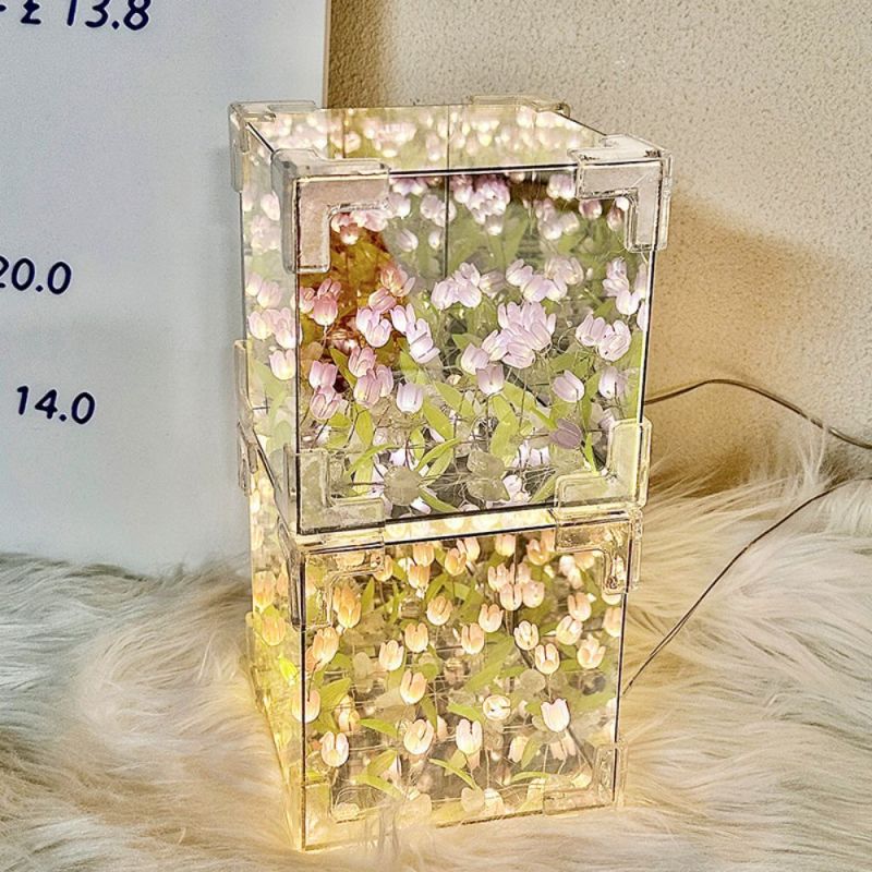 DIY Sea Cube Flower Tulip Lamp Kit Material Package Infinite Garden Acrylic Three-Dimensional Night Lamp Easy Assembly DIY Gift Gift for Girlfriends