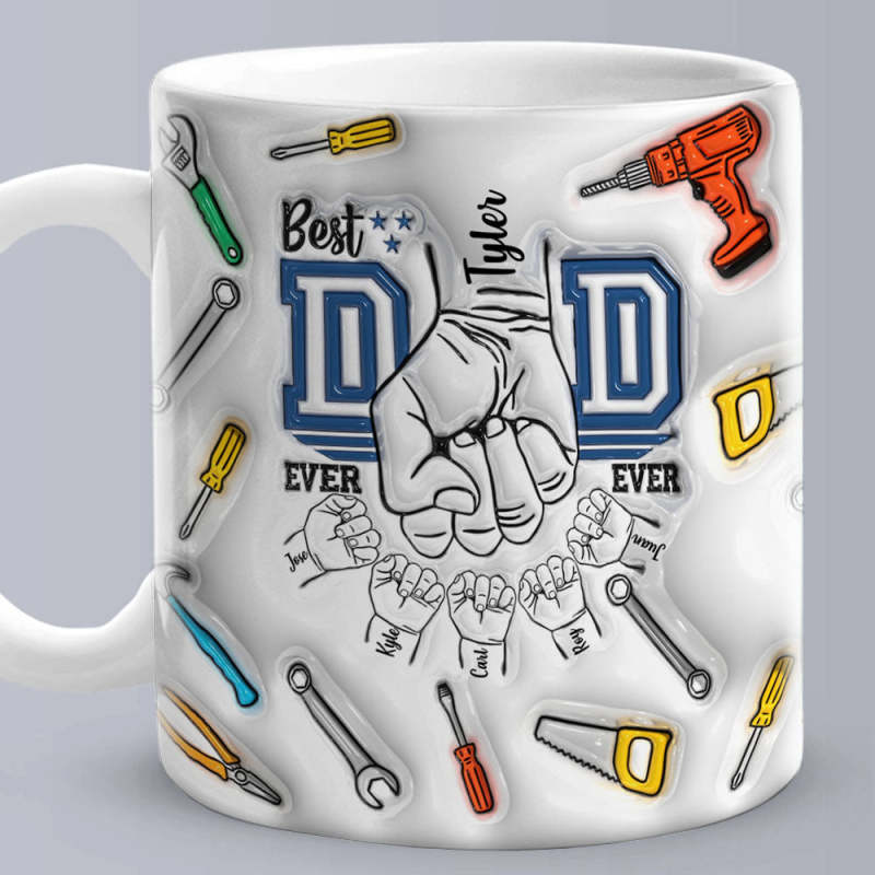 Father's Day Gifts Custom 1-6 Kids Personalized Names 3D Inflated Effect Printed Mug Best Dad Ever