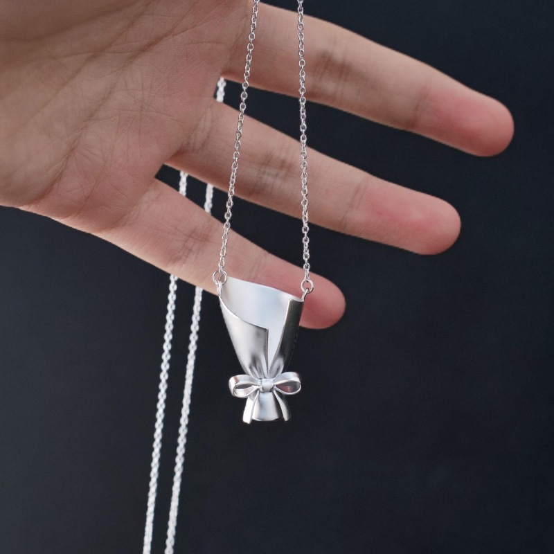 Tiny Flower Vase Pendant Necklace & Floral Brooch Pin Elegant Floral Accessory for Women