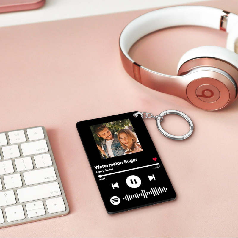 Gift For Love Custom Spotify Keychain Personalized Scannable Keychain Black & White