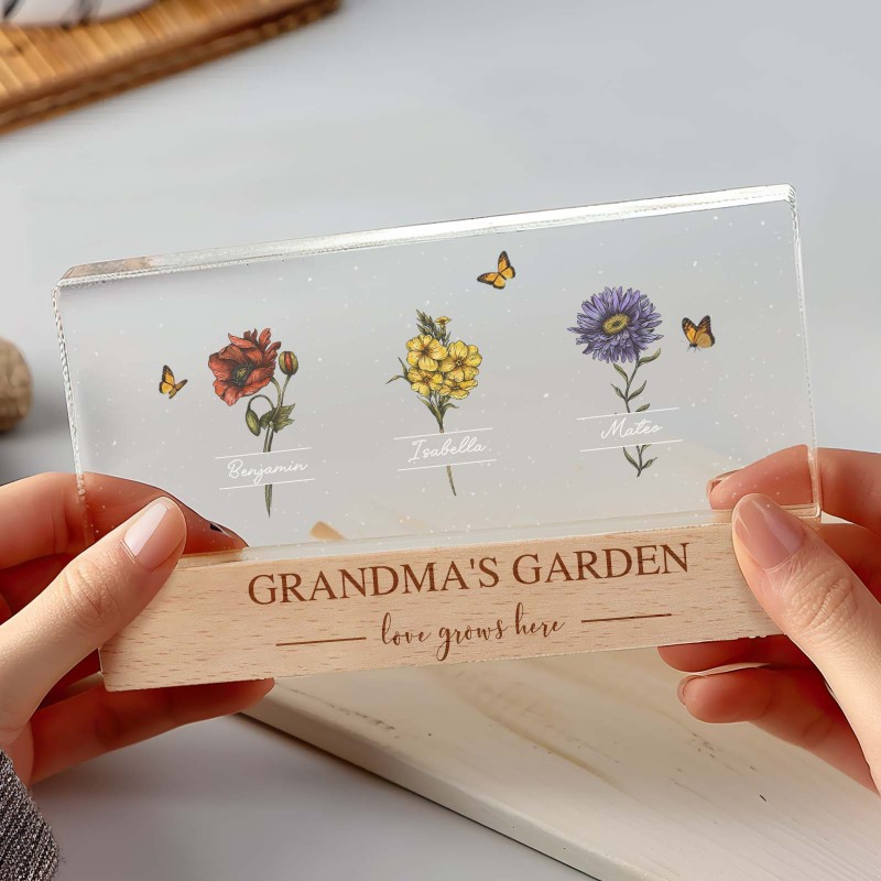 Grandma's Garden Of Grandkids Birth Month Flowers Personalized LED Night Light, Heartfelt Gift For Grandma, Mom