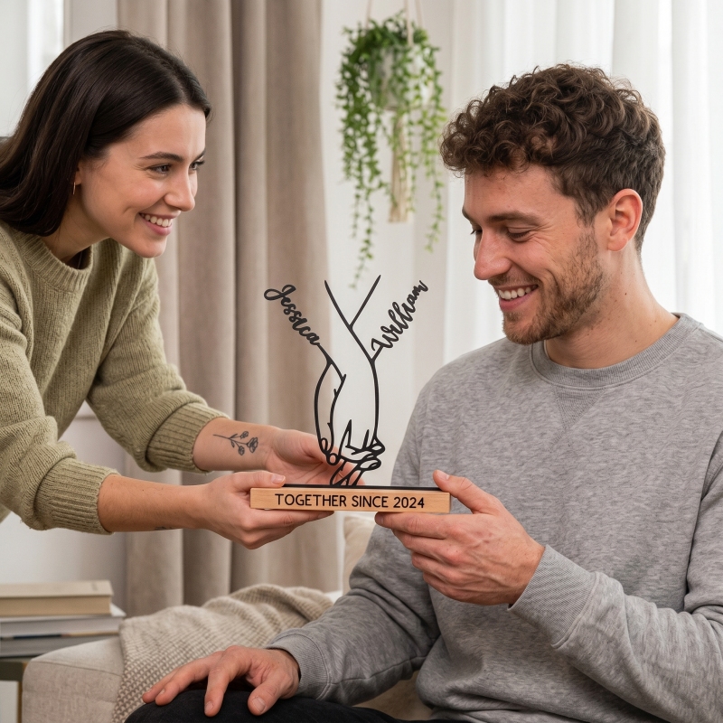Add a touch of elegance and personal connection to your space with our personalized "Hands Standee, a Metal Desk Silhouette Sculpture of a Couple Holding Hands". Expertly crafted to uplift the aura of your home or office, it serves as a reminder of the precious bond and unbreakable togetherness with your significant other. It especially resonates with couples, making it an ideal present for your husband or wife. Reflecting the beautiful sentiment, "Together Since, You & me....We got this", this sculpture immortalizes the concept of companionship.