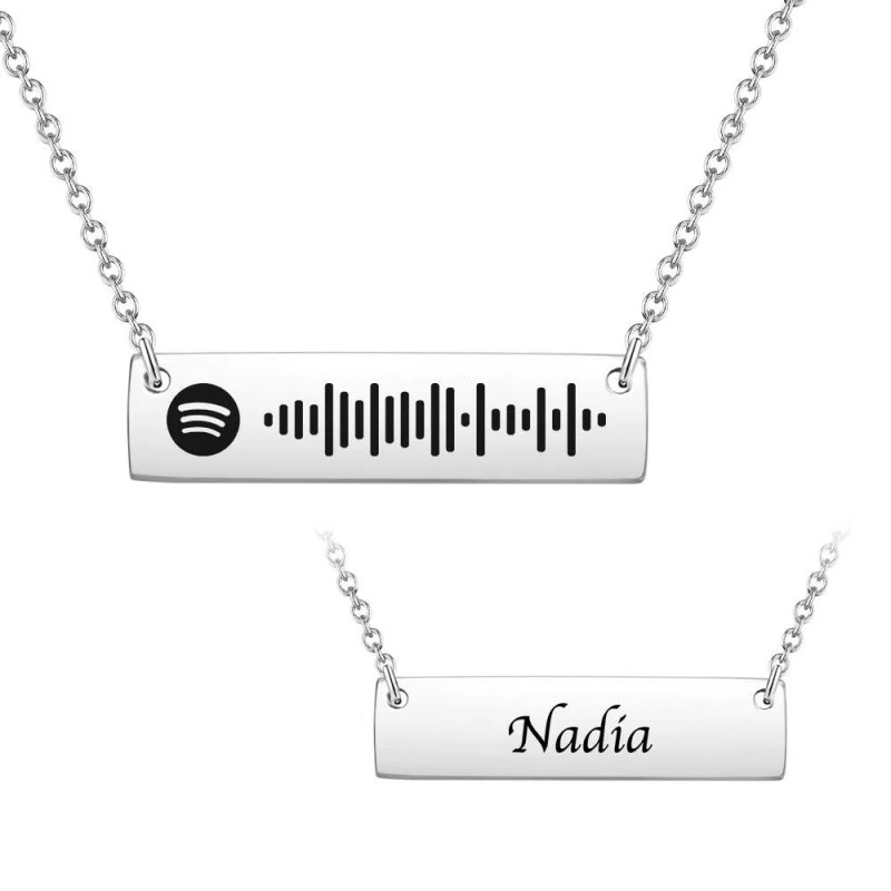 Home / Personalized Bar Necklace Spotify Code Necklace Engraved Name Stainless Steel Necklace Gift