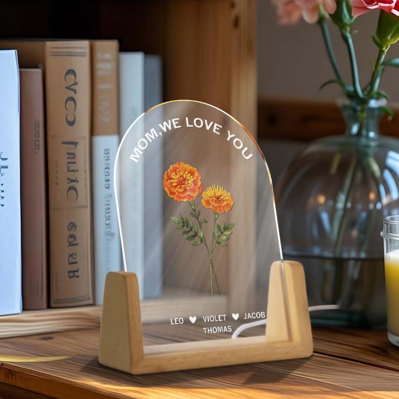 Personalized Birth Month Flower Acrylic Night Light, Boho LED Light, Gift for Mom, Birthday Gift, Custom Mom Night Light, Mothers Day Gift