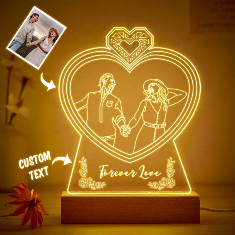 Personalized Double Heart Shaped Photo Night Light Custom Engraved 3D Lamp 7 Colors Acrylic Night Light Gifts for Lovers