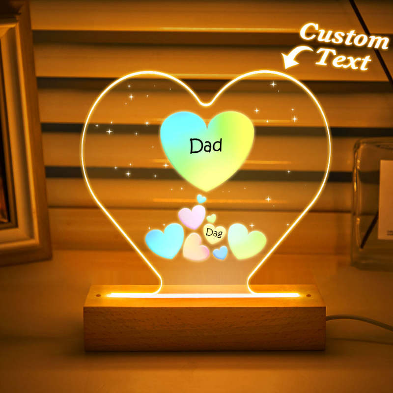 Personalized Engraved Family Heart LED Night Light Grandma Mom Hearts In Heart Lamp