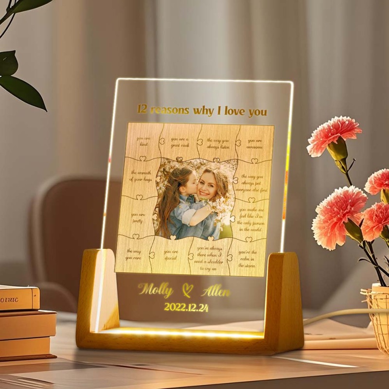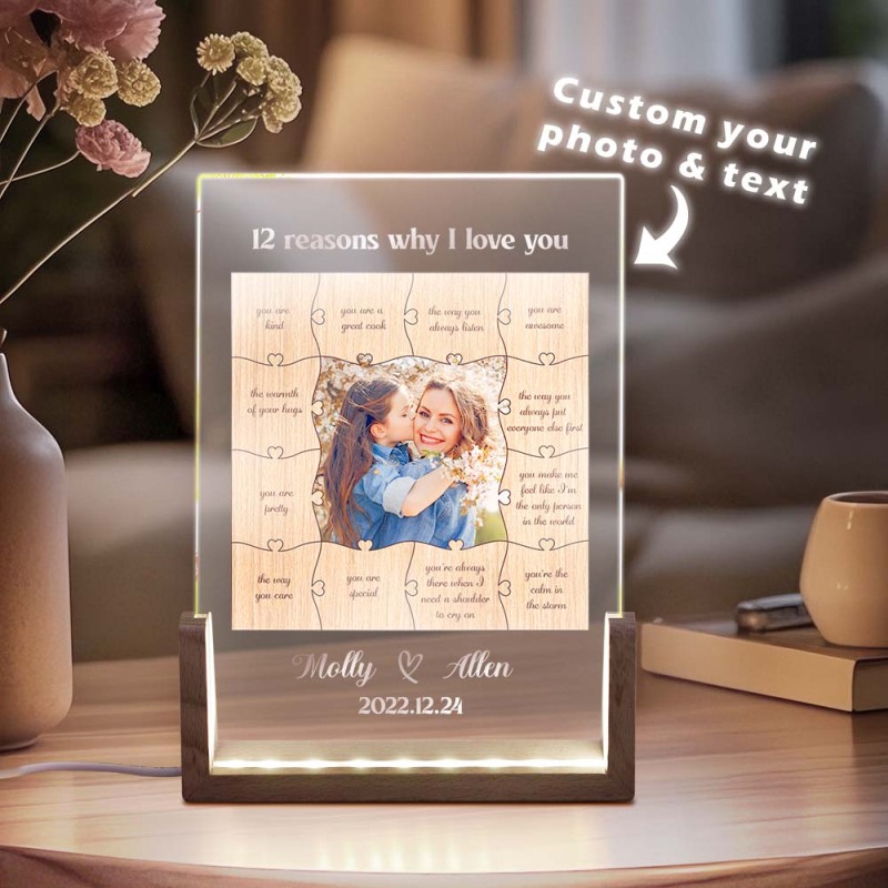 Personalized Gifts for Mom Picture Frame with LED Night Light, Customized Photo Acrylic Plaque Night Light, Mothers Day Gift Birthday Gift for Mom from Daughter