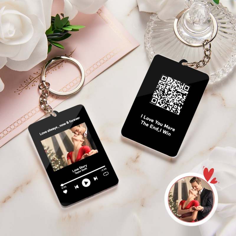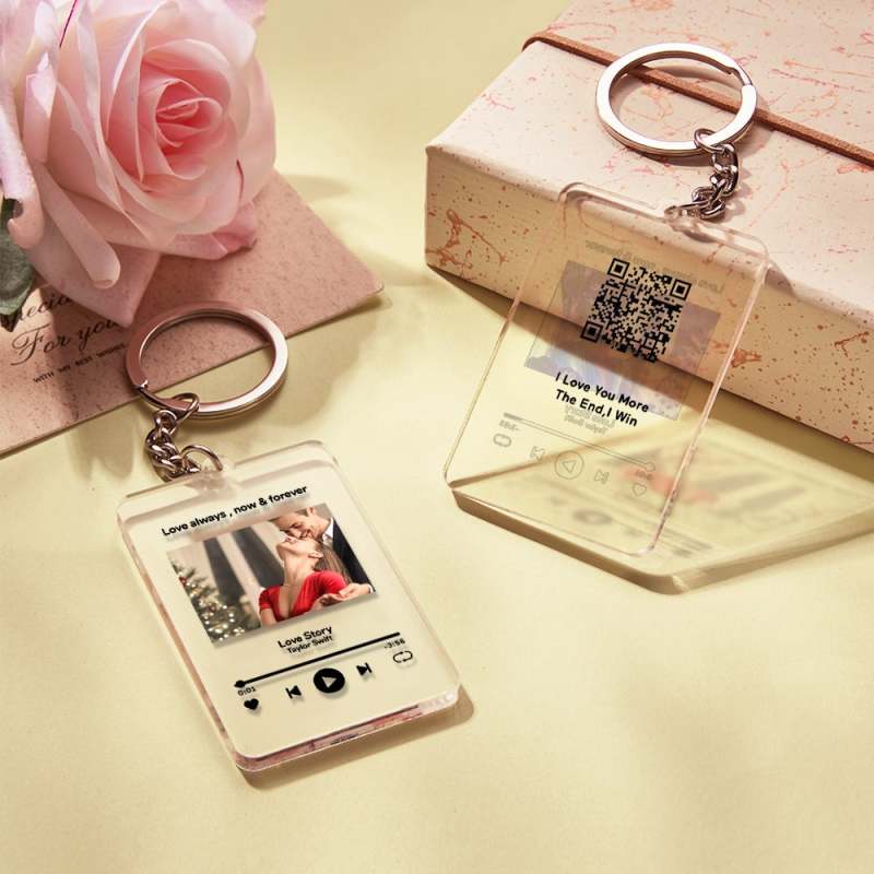Personalized Keychain Custom Scannable QR Code Keychain Personalized Photo and Text Keychain Gift For Her