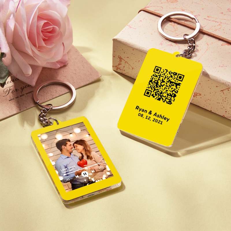 Personalized Keychain Photo Keychain Custom Scannable QR Code Submit Your Favorite Video Gift For Her