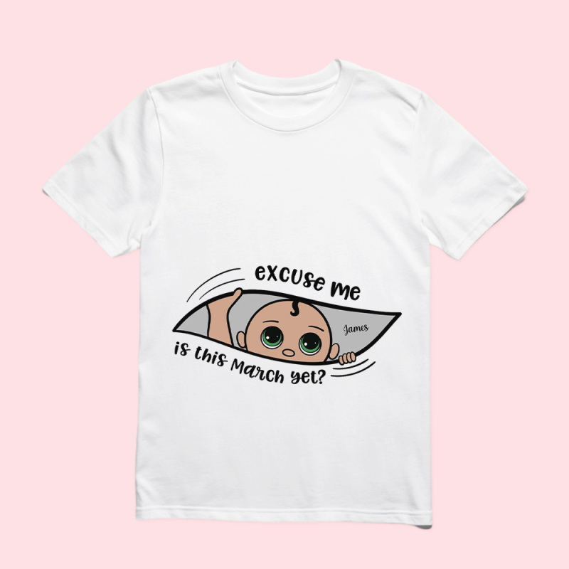 Personalized Maternity Shirt, Excuse Me Is It Yet, Pregnancy Announcement, Expecting Parents