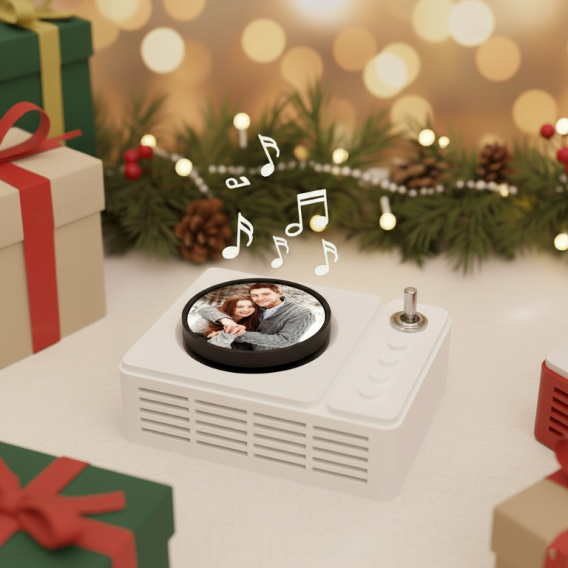 Bring music and memories together with this Custom Music Mini Record Player - a retro-inspired, high-tech personalized gift perfect for Christmas.