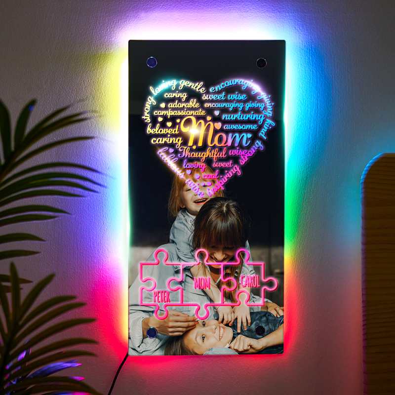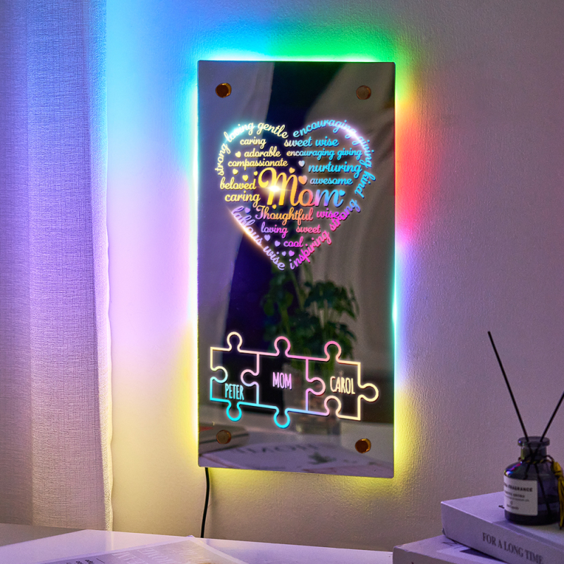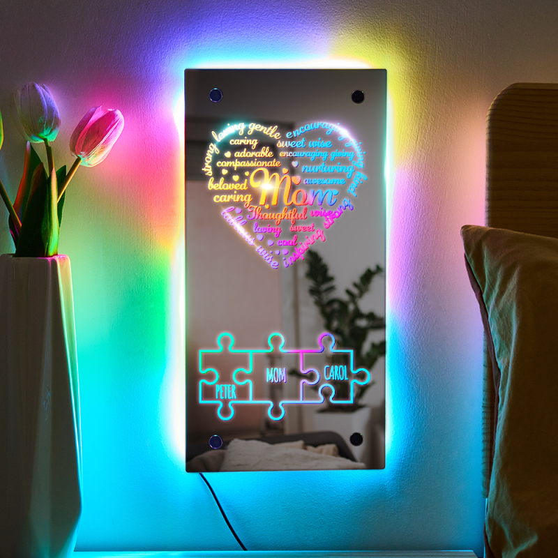 Personalized Mother's Day Puzzle Mirror Light Custom Engraved Affirmation Heart Mirror Light Mother's Day Gifts