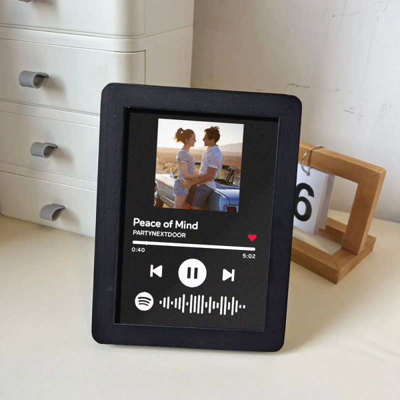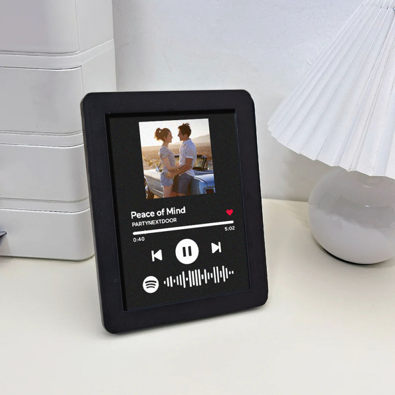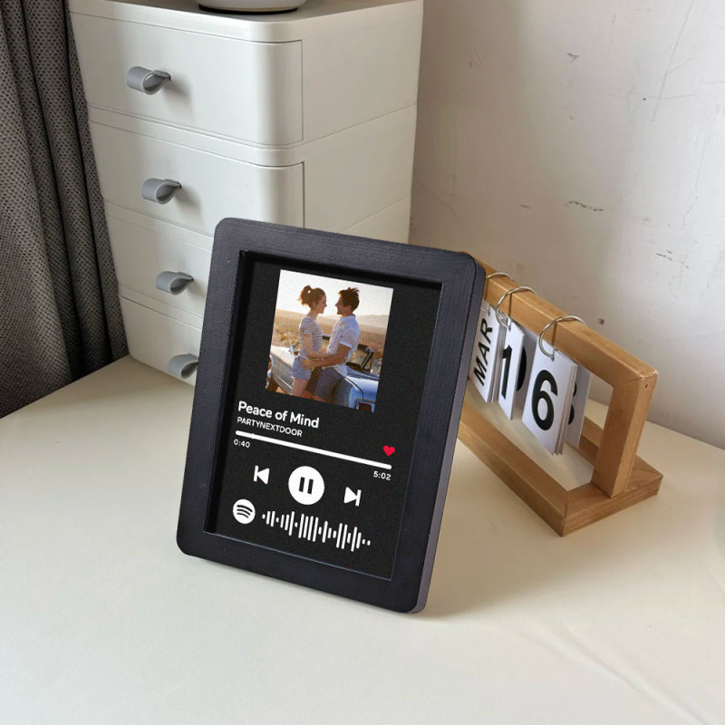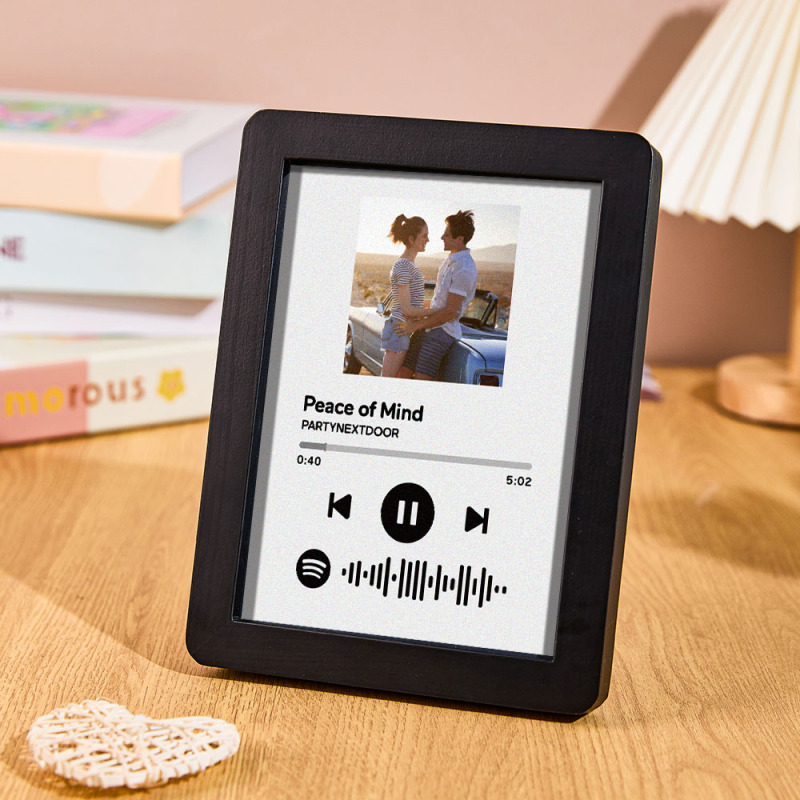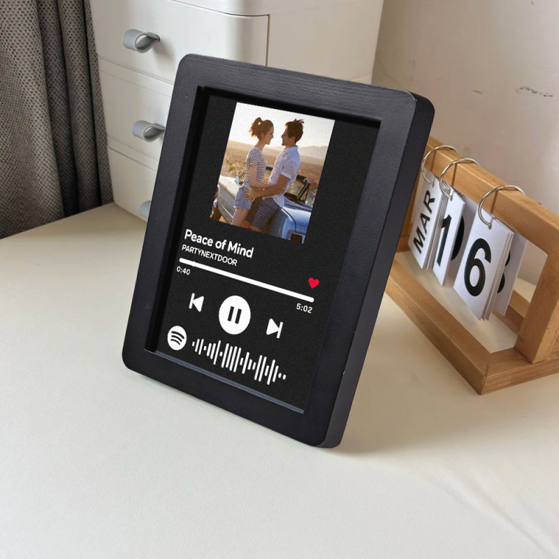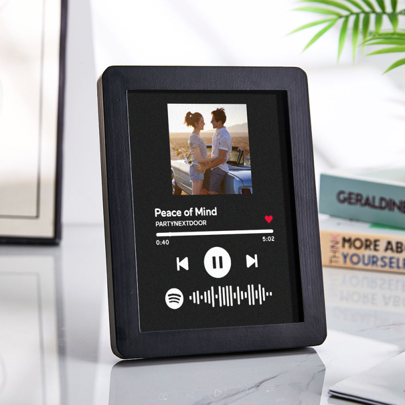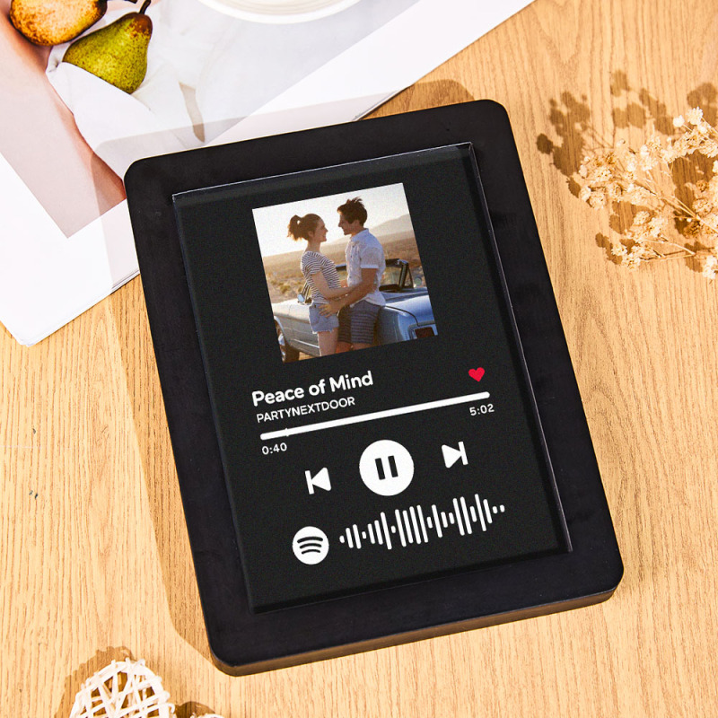 Personalized Music Picture Frames Valentine's Day Gifts for Him Her - Wooden Picture Frame for Boyfriend Girlfriend - Acrylic Customized Music Plaque - Custom Photo Gifts