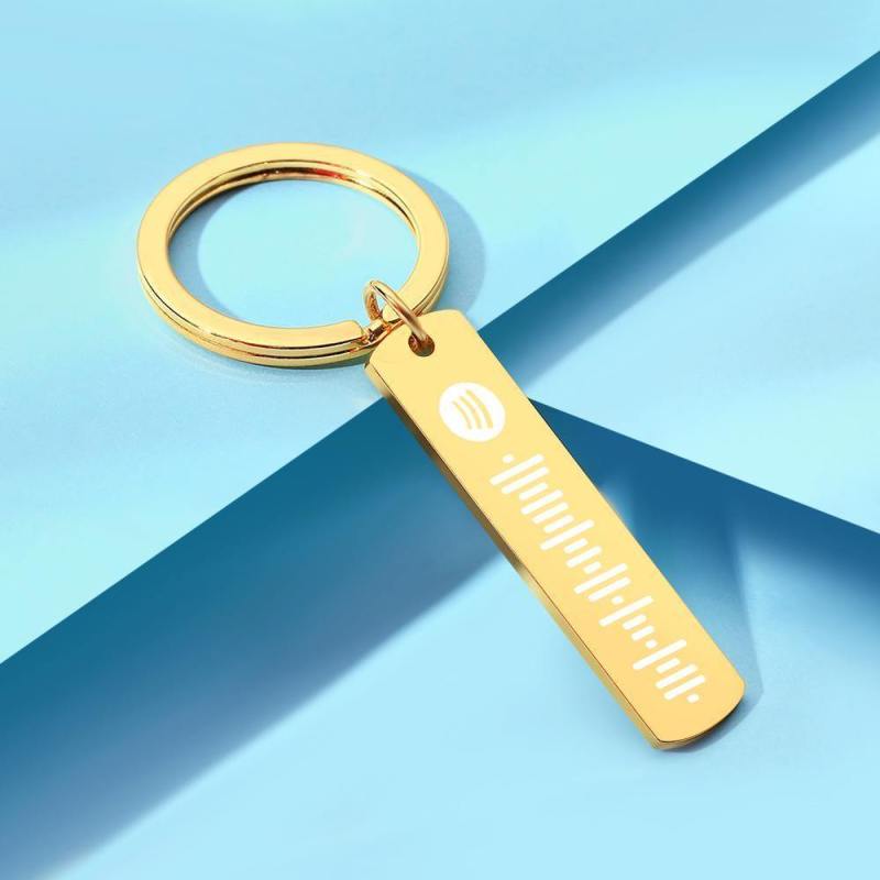 Personalized Music Spotify Scan Code Stainless Steel Keychains Custom Laser Engrave Keyring Gold