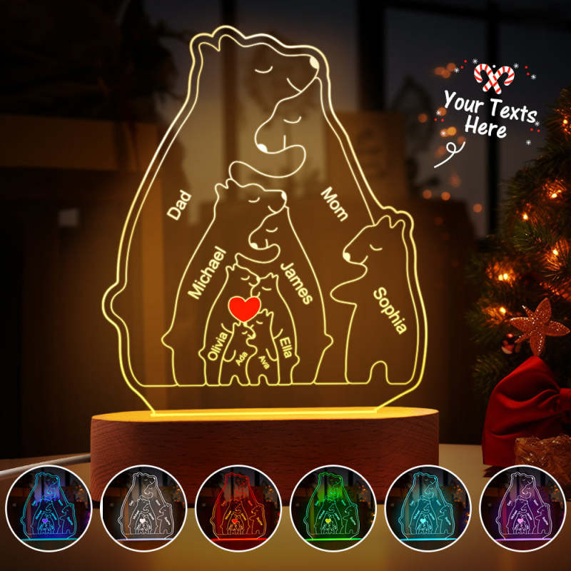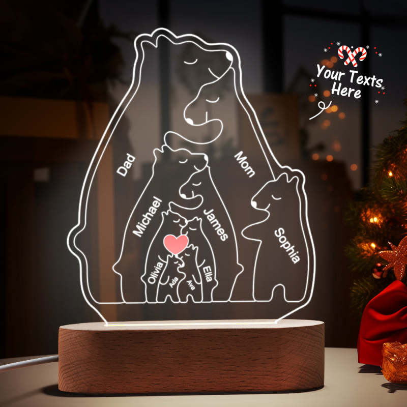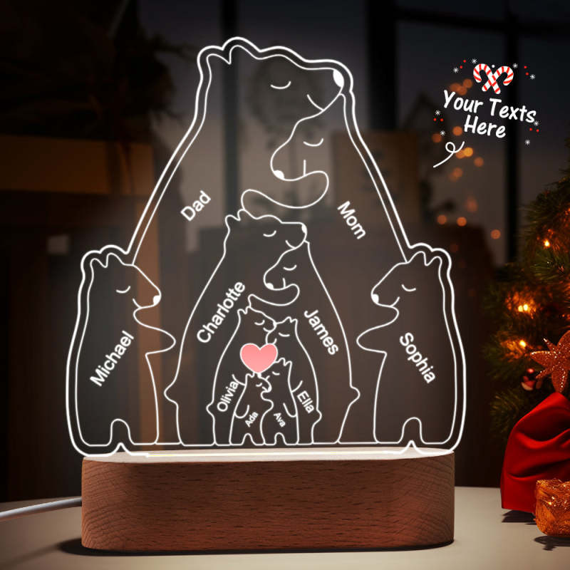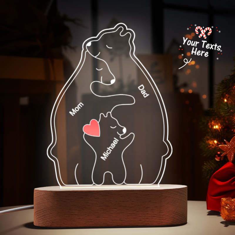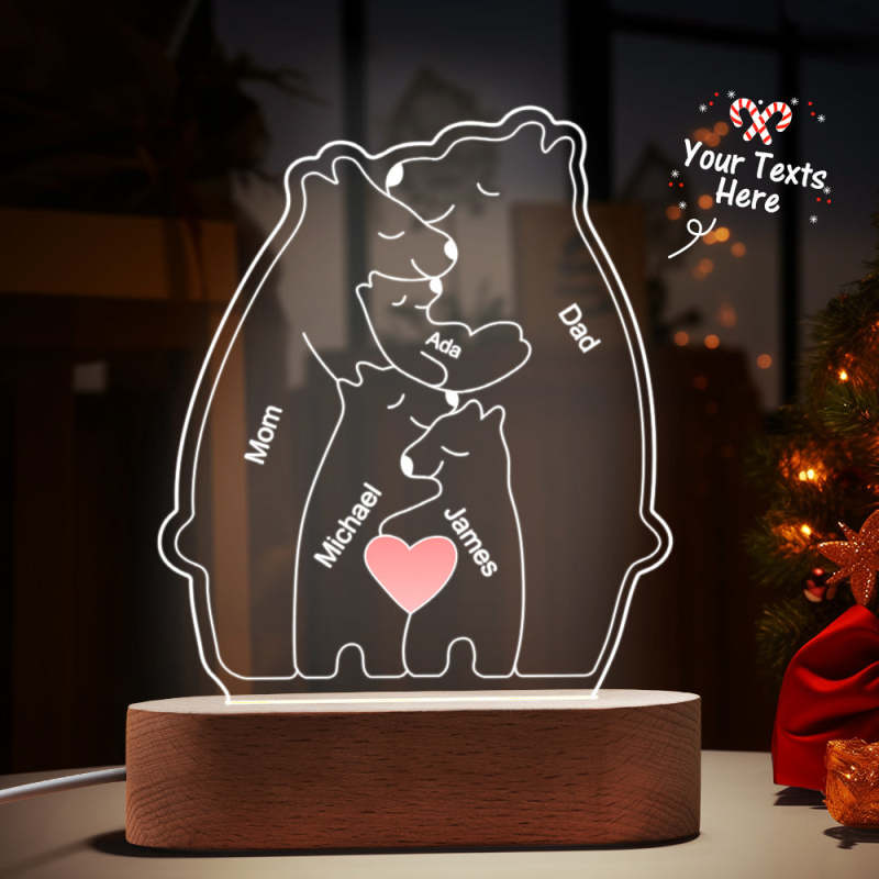 Personalized Names Warm Bear Family Acrylic Lamp Custom Night Light Best Christmas Gift
