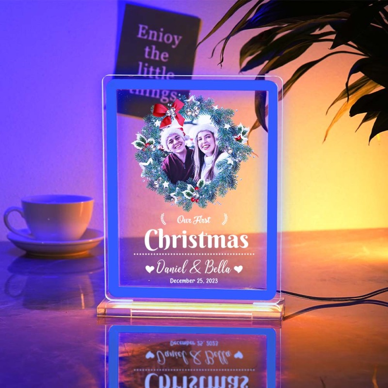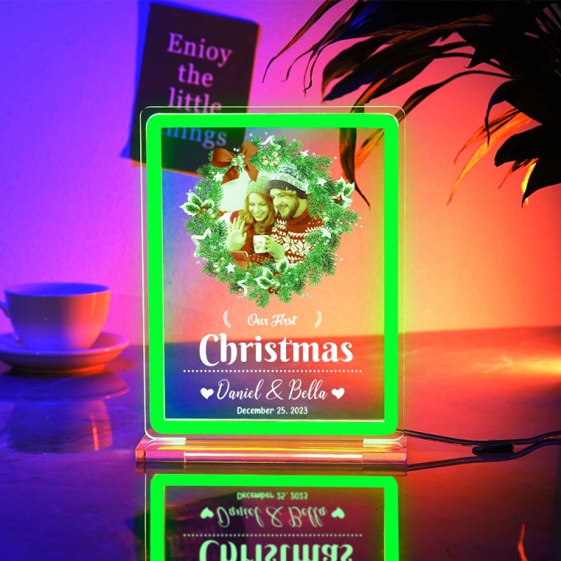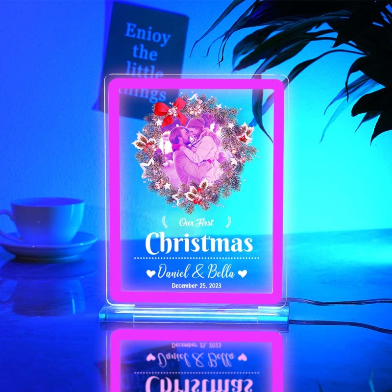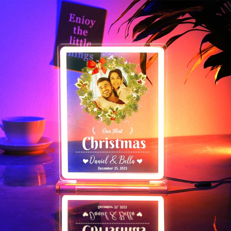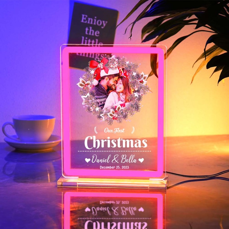 Personalized Photo Night Light With Neon Sign Our First Christmas Theme Lamp Christmas Gifts