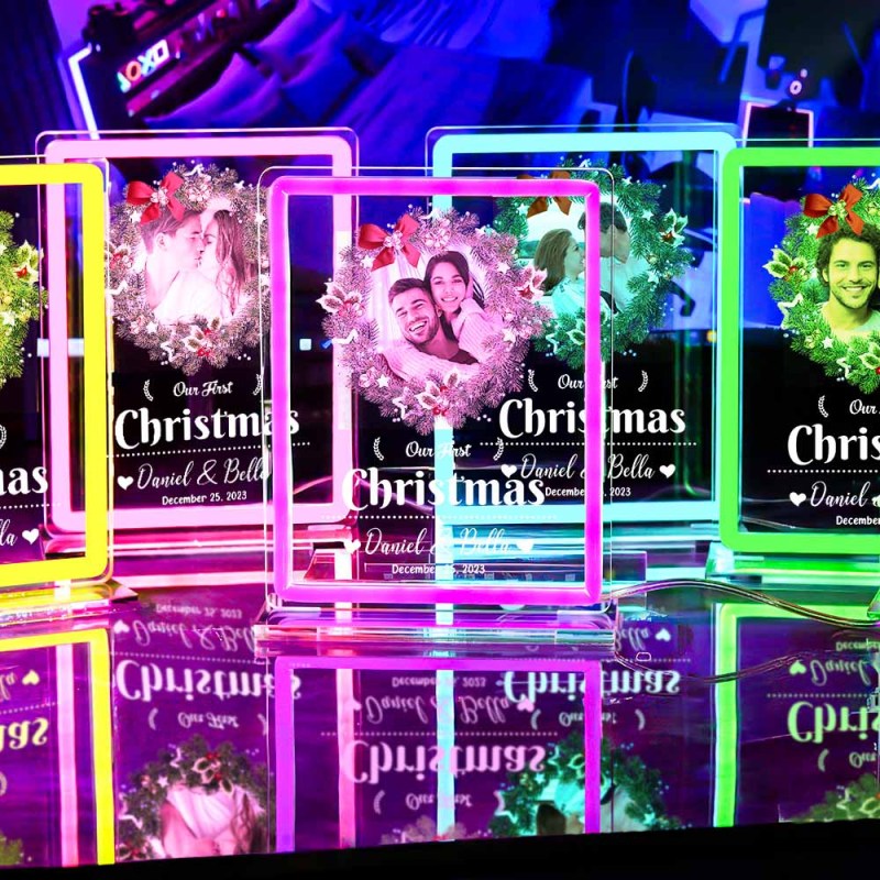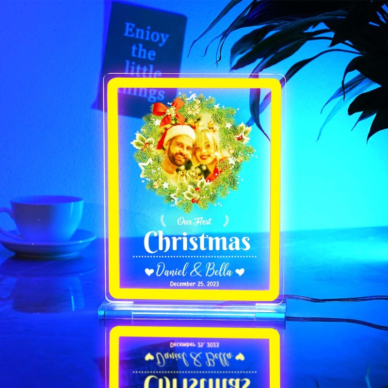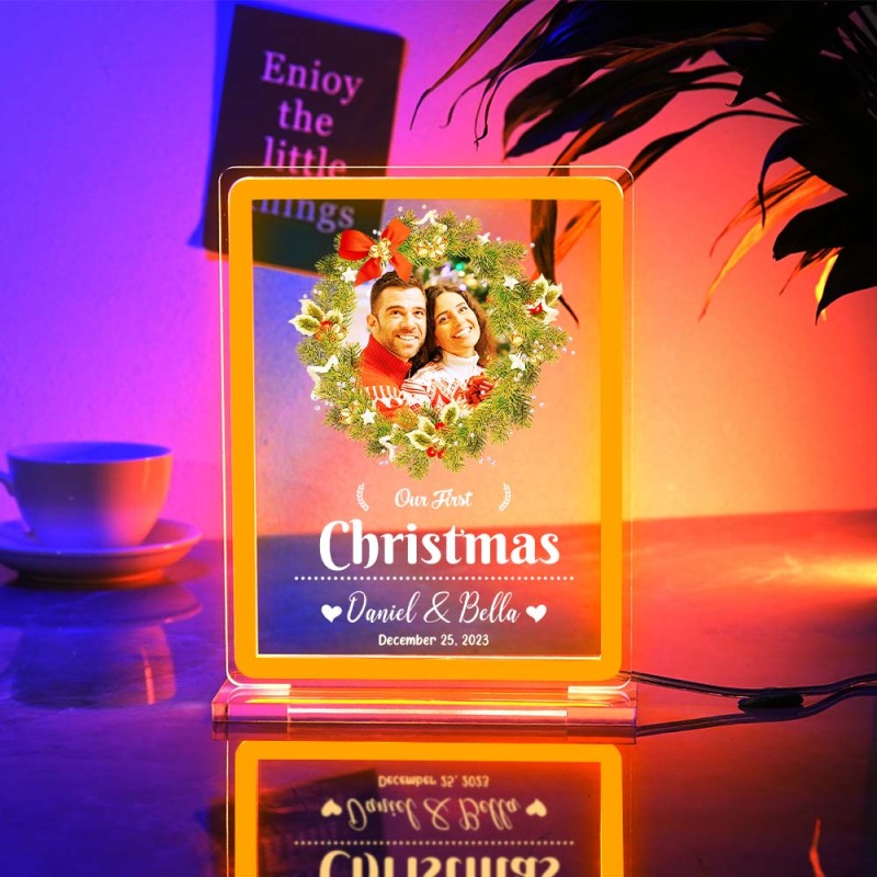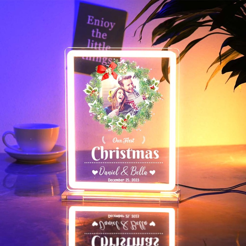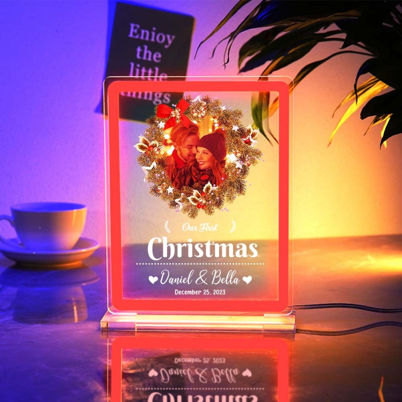 Personalized Photo Night Light With Neon Sign Our First Christmas Theme Lamp Christmas Gifts