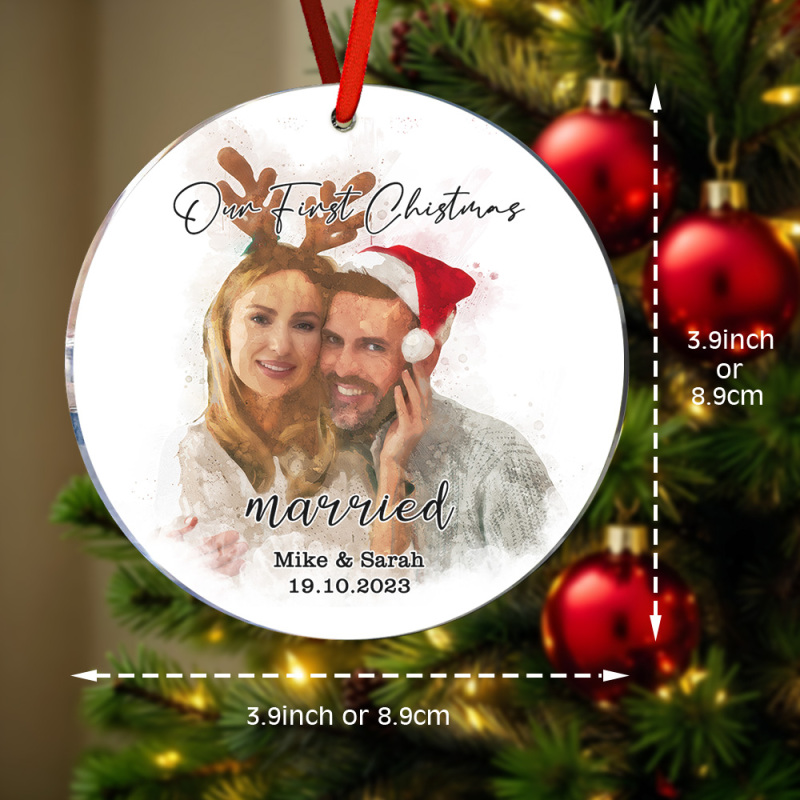 Personalized Watercolor Portrait Married Ornament First Christmas Married Ornament from Photo Newlywed Christmas Gift