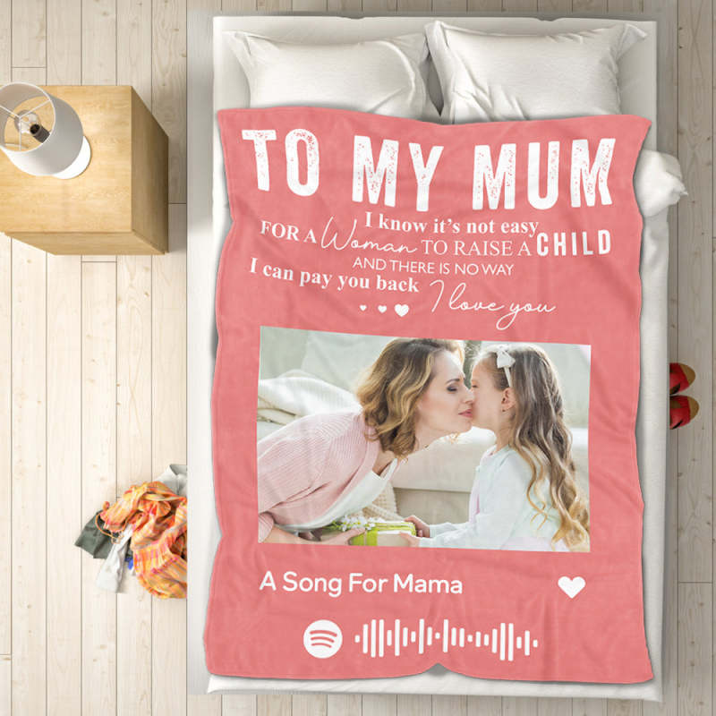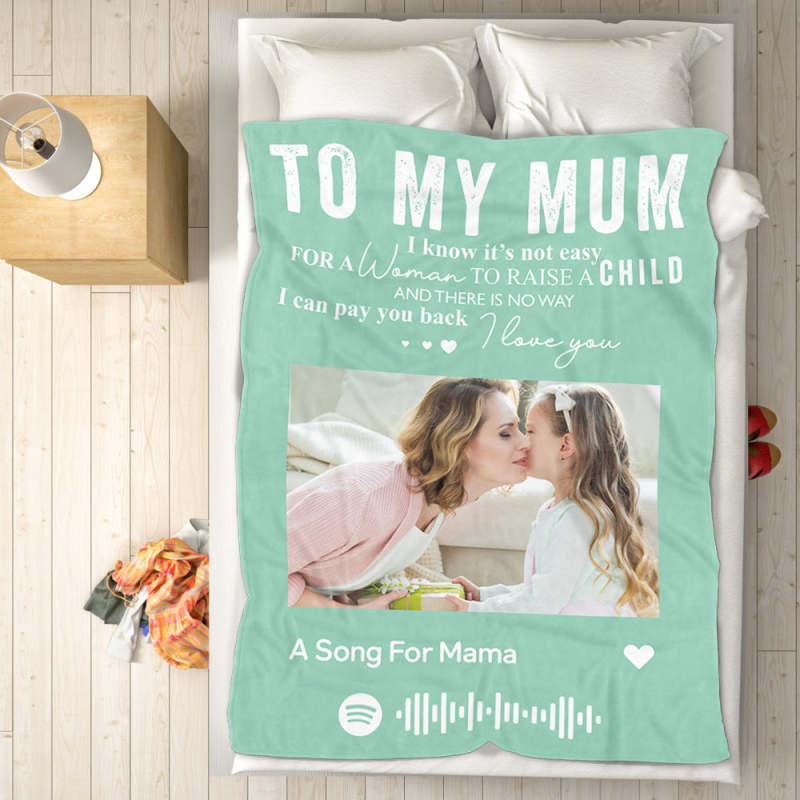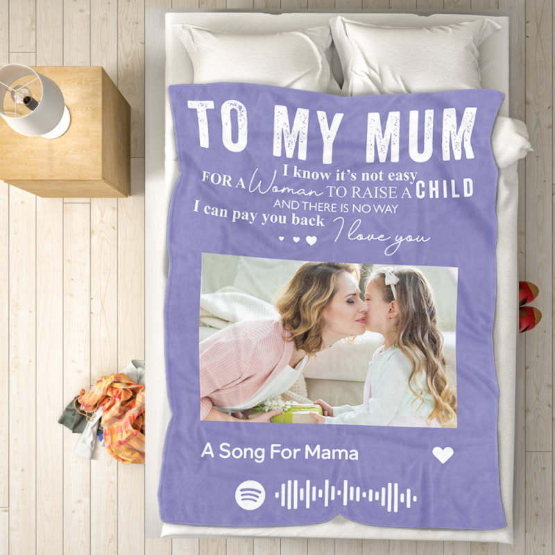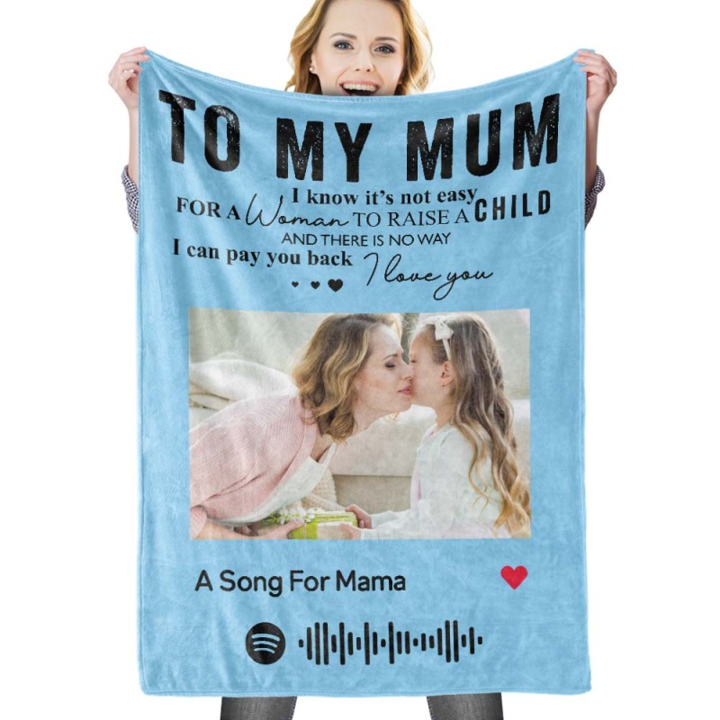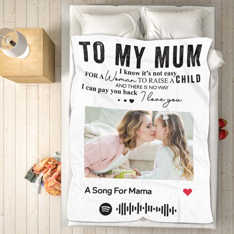 To My Mum Scannable Spotify Music Code Blanket Personalized Photo Blanket Black Blanket Mother's Day Gift