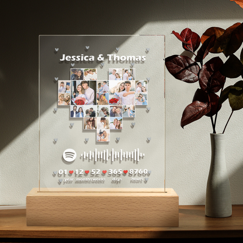Wedding Gift for Her Custom Spotify Code Heart Keychain/Plaque/Night Light - 21 Photos