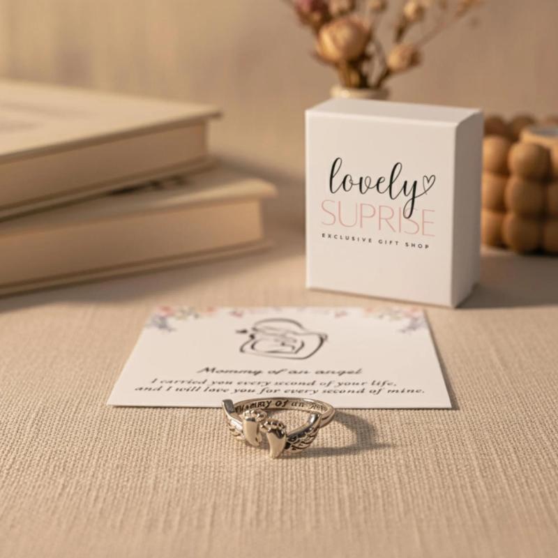 Baby Foot with Angel Wings Ring Gift for Women Mother Mom