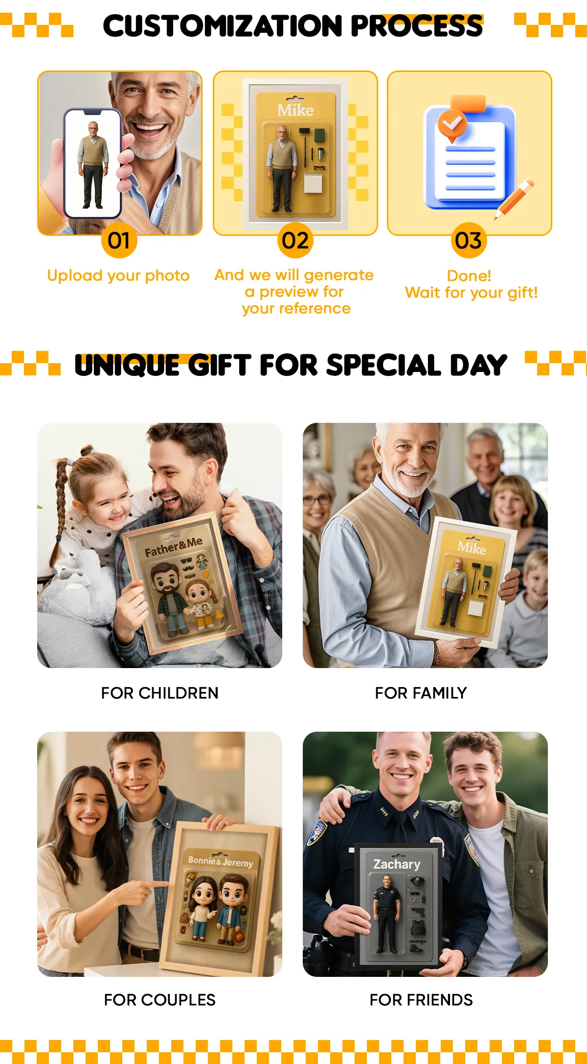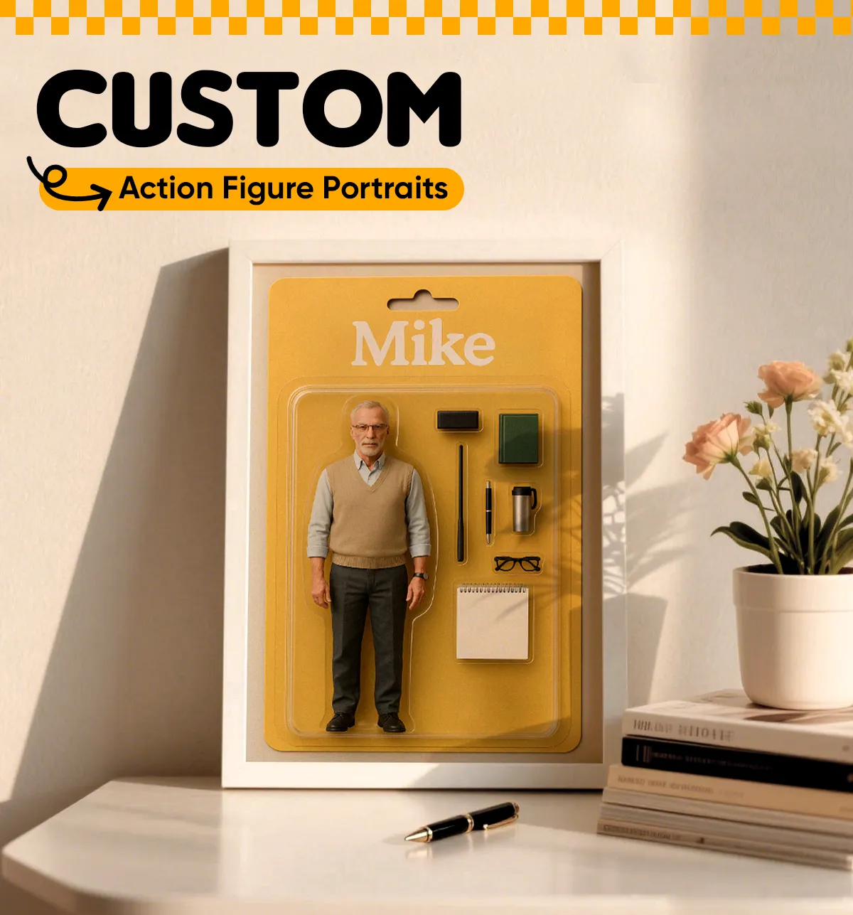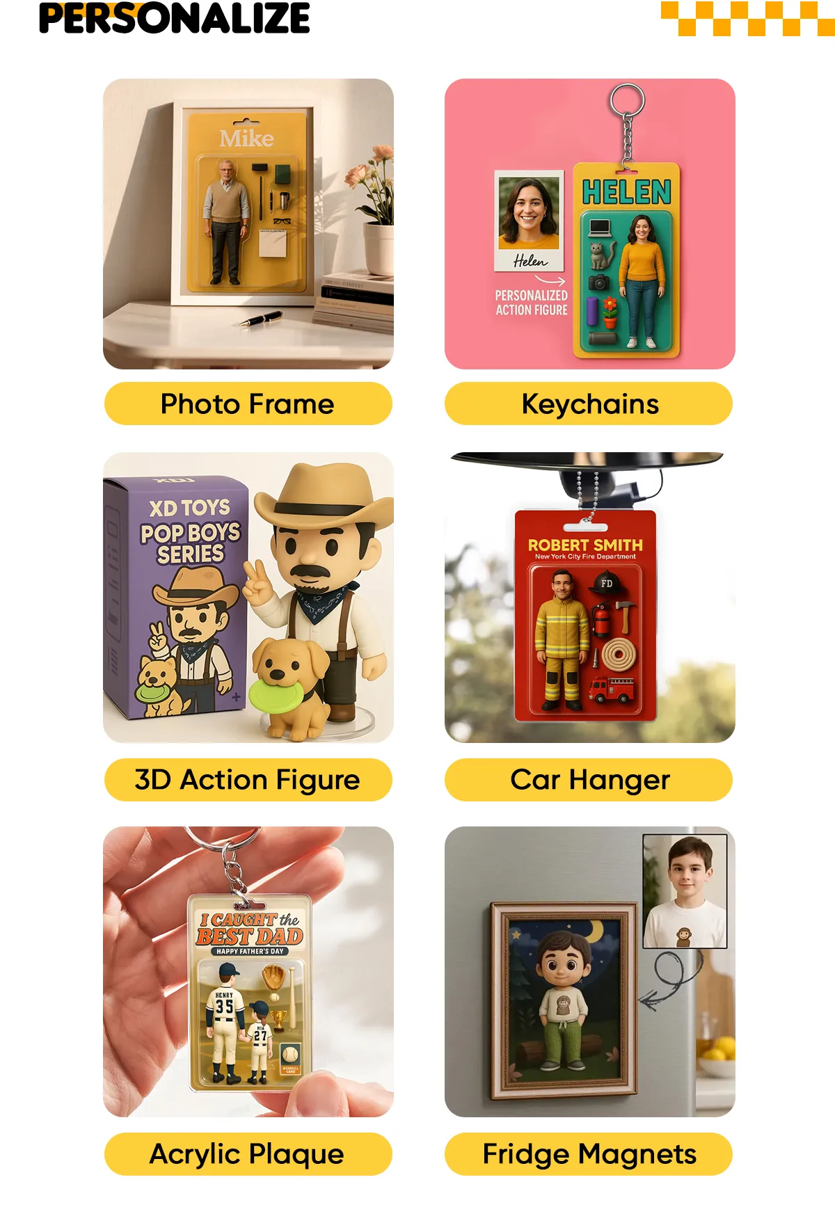 Custom 3D Effect Action Figure Pack Packaging Toy Box Style Art Gift Personalized Acrylic Car Hanger Gift for Dad