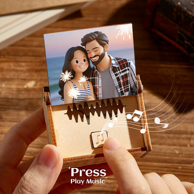 Custom Digital Music Box Any song Tune or Voice Personalized Wooden Photo Music Box with Text Anniversary Gifts