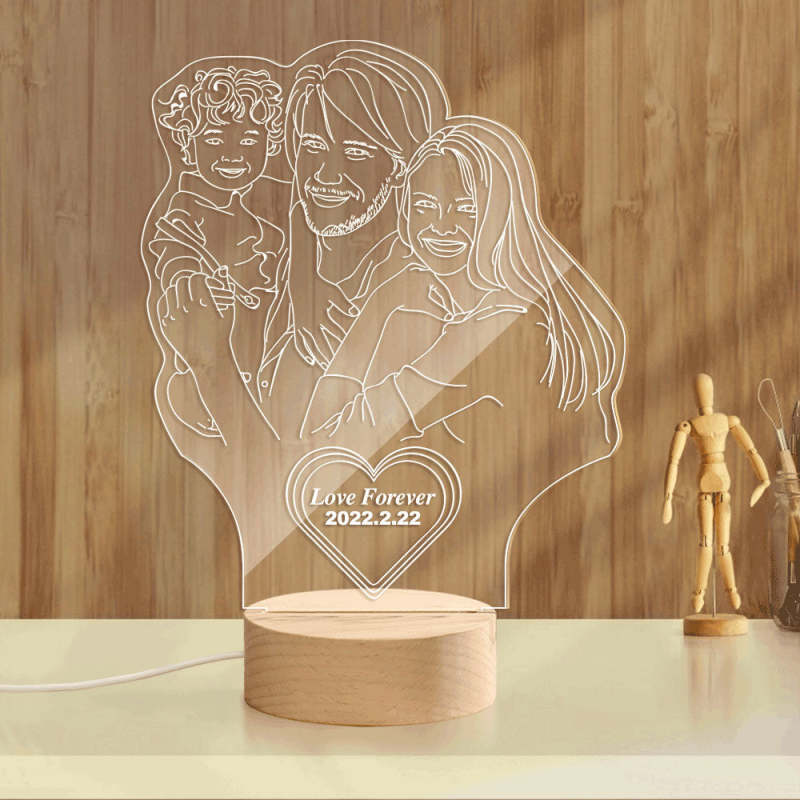 Custom Heart-shaped Engraved 3D Photo Lamp Led Personalized Night Light Gift for Family