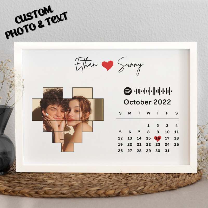 Custom Photo Calendar and Names with Spotify code Wooden Frame Gifts for Her Love Couple